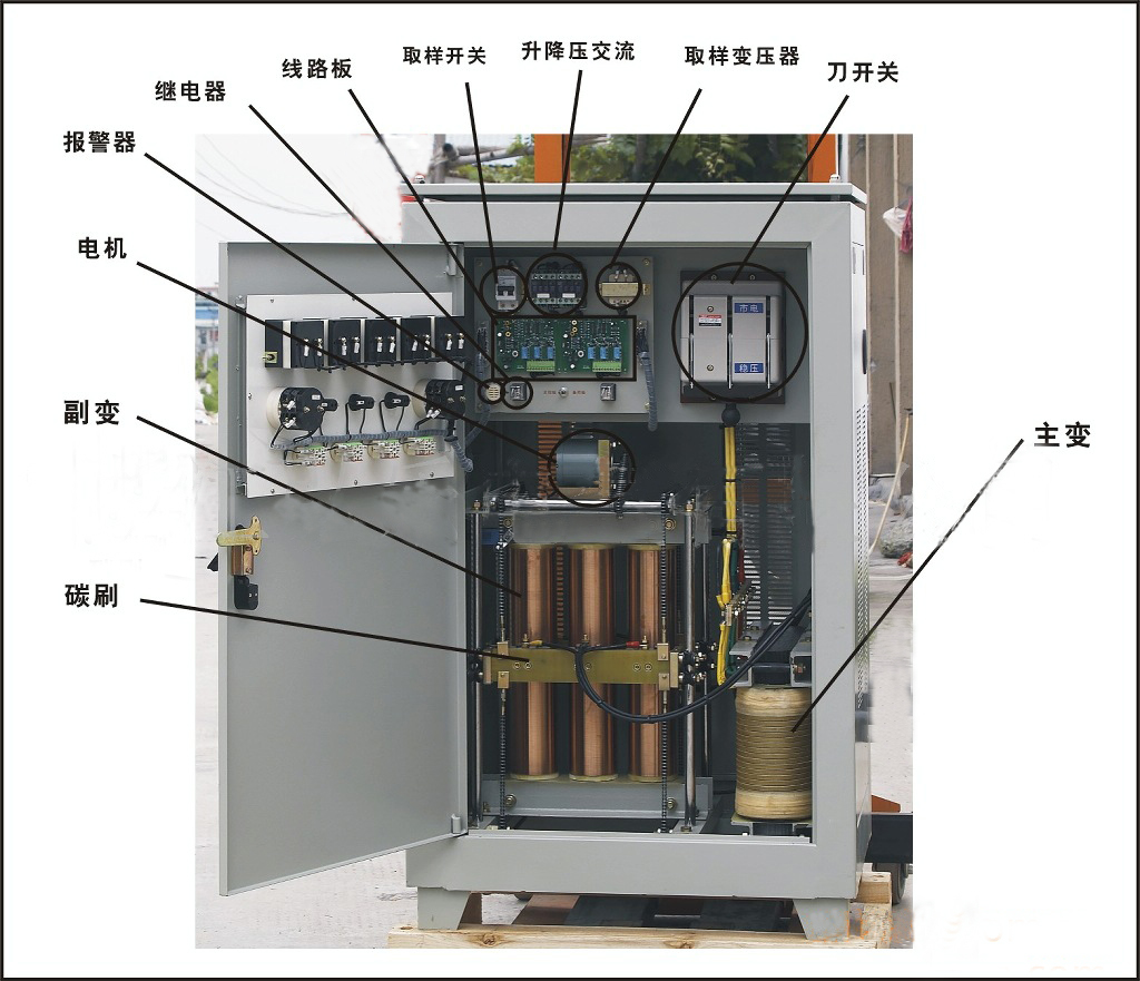 SBW三相交流穩(wěn)壓器為接觸調(diào)壓自動(dòng)補(bǔ)償式大功率穩(wěn)壓電源,當(dāng)電網(wǎng)電壓波動(dòng)或負(fù)載電流變壓時(shí),能自動(dòng)穩(wěn)定輸出電壓,以保障用電設(shè)備正常運(yùn)行。